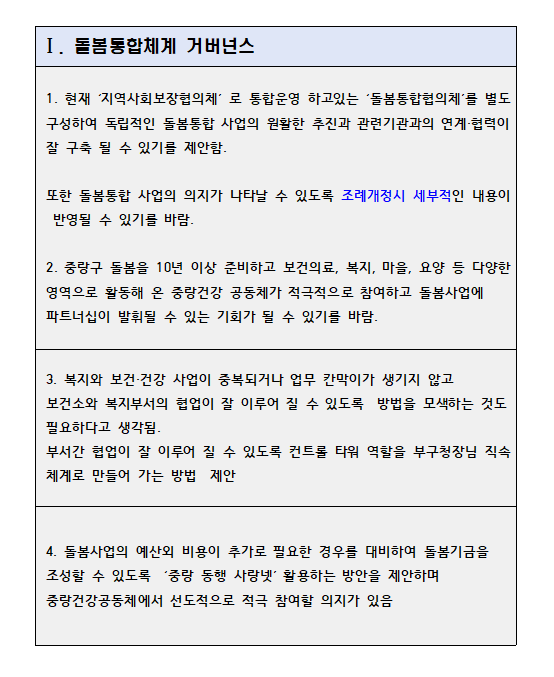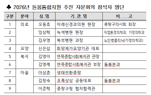중랑건강공동체 통합돌봄자문회의