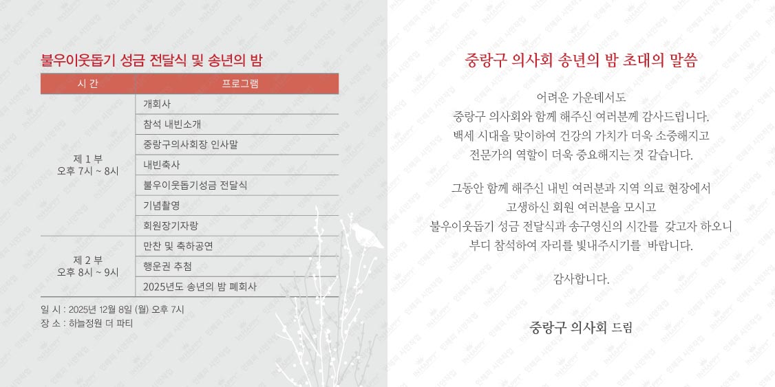 중랑구 의사회 송년의 밤 초대의 말씀
